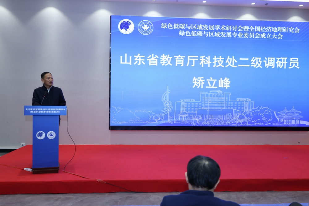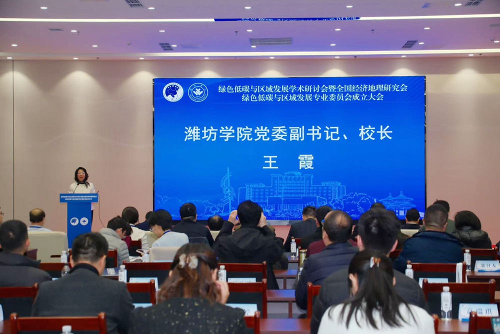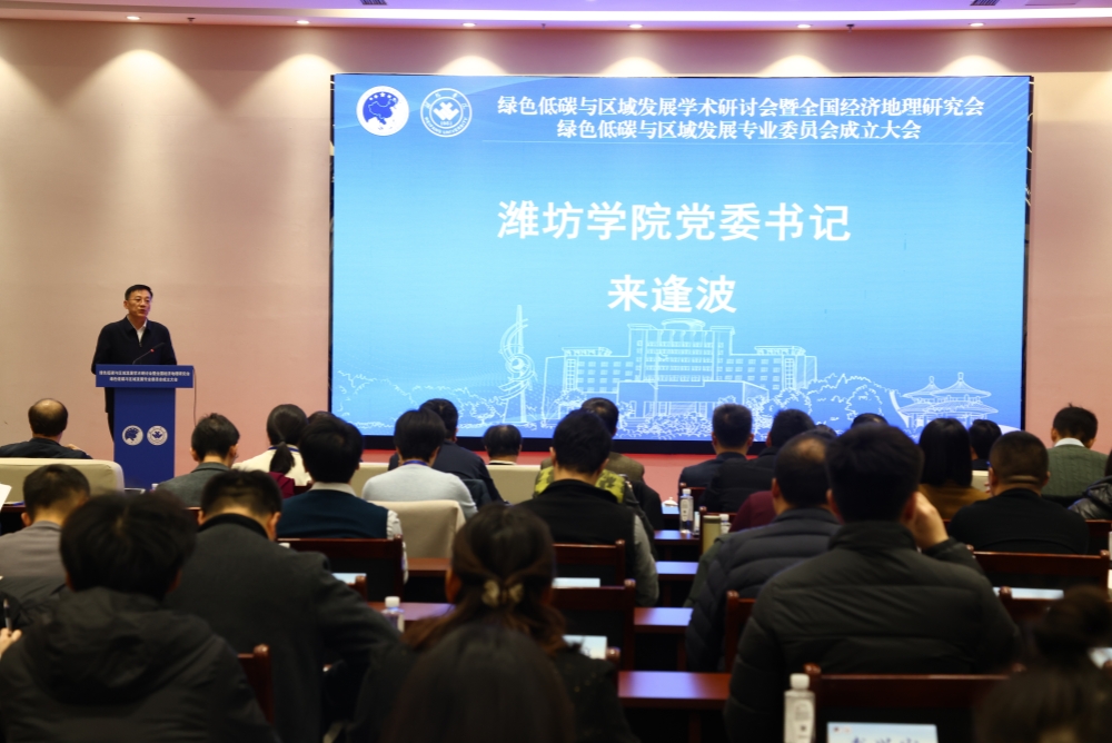 本網訊 11月29日,綠色低碳與區域發展學術研討會暨全國經濟地理研究會綠色低碳與區域發展專業委員會成立大會在學校舉辦。全國經濟地理研究會名譽會長孫久文,全國經濟地理研究會會長、中國人民大學教授張可云,濰坊市副市長狄波,山東省教育廳科技處二級調研員矯立峰,山東港口渤海灣港集團總經理王玉福,學校黨委書記來逢波出席開幕式并致辭。開幕式由學校黨委副書記、校長王霞主持。