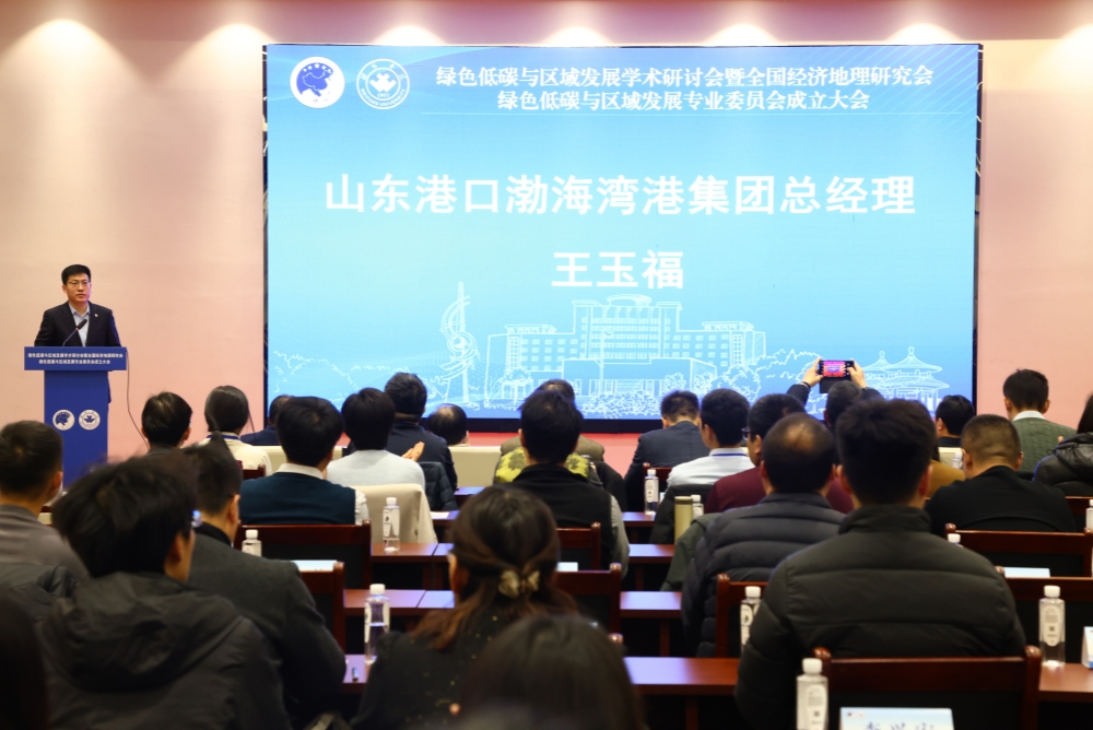 在與會領導嘉賓的共同見證下,張可云與來逢波為“全國經濟地理研究會綠色低碳與區域發展專業委員會”揭牌,會上還同時揭牌成立了學校與山東港口渤海灣港集團共建的“智慧綠色港口研究院”。孫久文、張可云為專委會首批受聘專家頒發聘書,這標志著全國經濟地理研究會綠色低碳與區域發展專業委員會正式落戶學校并啟動運行,將為相關領域的學術交流與協同創新提供面向全國的高層次交流與研究平臺。