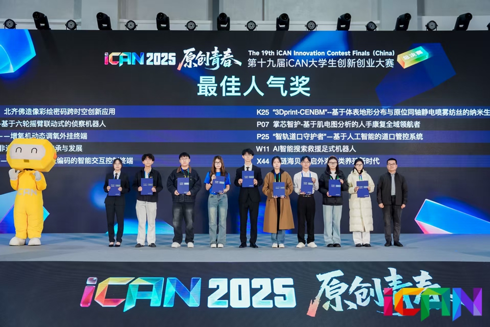 本網訊  近日,第十九屆iCAN大學生創新創業大賽全國總決賽結果正式公布。學校參賽團隊表現優異,獲得一等獎一項、三等獎兩項,并獲“優秀指導教師獎”與“最佳人氣獎”等榮譽。