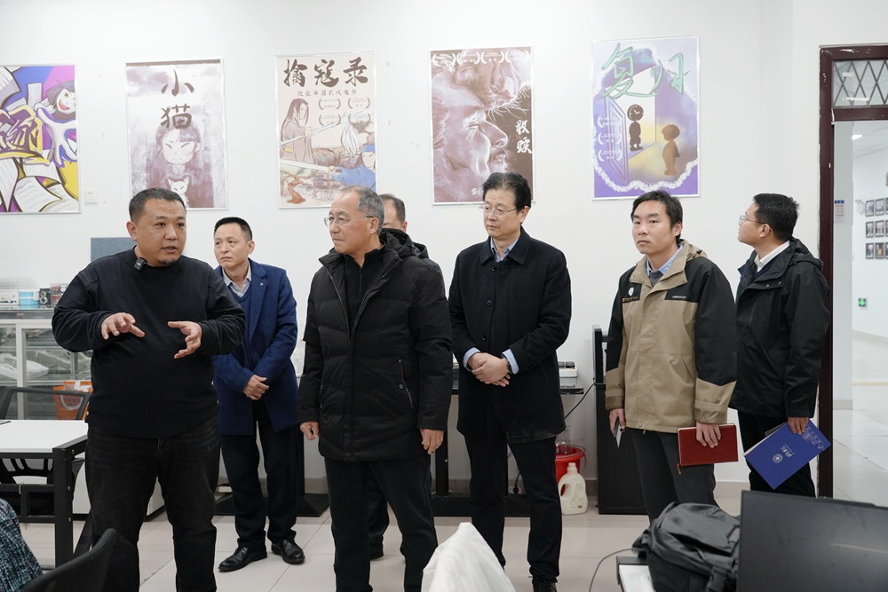 孫科順一行還實地參觀了學校數字創意與融媒體協同創新平臺,觀看了優秀動畫作品展映,現場觀摩了融媒體技術應用、數字內容制作等方面的教學與實踐成果,深入了解了學校在視聽內容創作、動畫制作教學方面的特色成果。