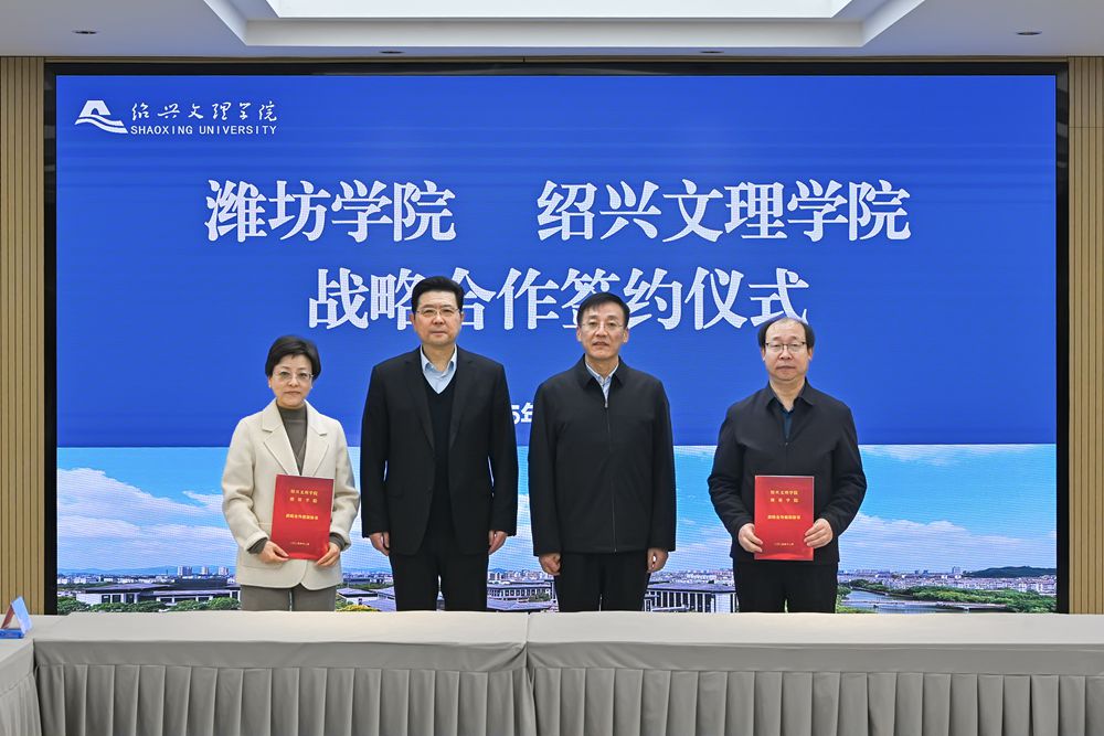 本網訊 12月23日,學校與紹興文理學院戰略合作簽約儀式在紹興文理學院舉行。紹興文理學院黨委書記崔鳳軍,學校黨委書記來逢波出席會議并致辭。紹興文理學院副校長陳均土、紀委書記唐曉青,學校黨委委員、副校長李英德出席活動。