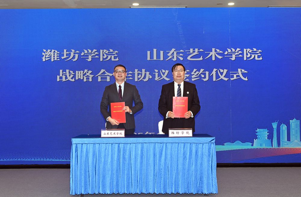 本網訊   12月27日,山東藝術學院與濰坊市及我校戰略合作協議簽約儀式在濰坊舉行。濰坊市委書記劉運,山東藝術學院黨委書記徐梅,濰坊學院黨委書記來逢波出席儀式并致辭。濰坊市副市長狄波,山東藝術學院黨委委員、副院長韓文濤,濰坊學院黨委委員、副校長王成端出席活動。