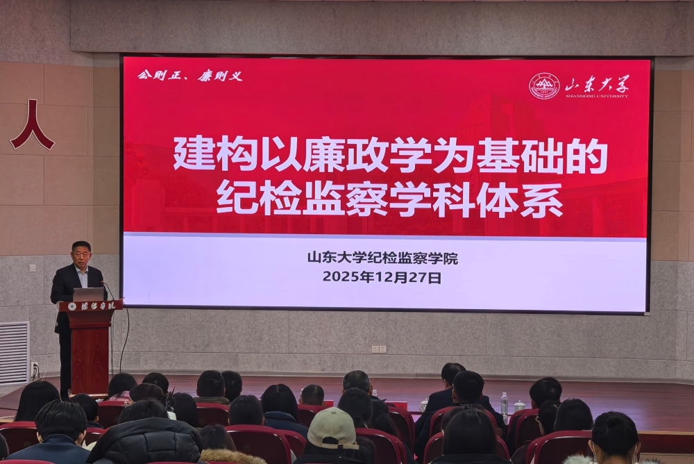 本次學術研討會分為主旨報告、主題報告和分組討論三個階段。主旨報告環節,山東大學二級教授、博士生導師、紀檢監察學科帶頭人、山東省法學會副會長肖金明作題為“建構以廉政學為基礎的紀檢監察學科體系”的報告。他提出構建以廉政學為基礎的學科架構,通過優化學科生態、完善知識體系結構、明確學理內核及運用科學方法論,推動紀檢監察學科自主知識體系發展。蘇州大學國家監察研究院院長、教授、博士生導師李曉明作題為“國法與黨規的關系:積極落實習近平總書記新近提出的‘堅持依法治國和依規治黨有機統一’”的報告,深入解讀了依法治國與依規治黨有機統一的深刻內涵與內在關聯。