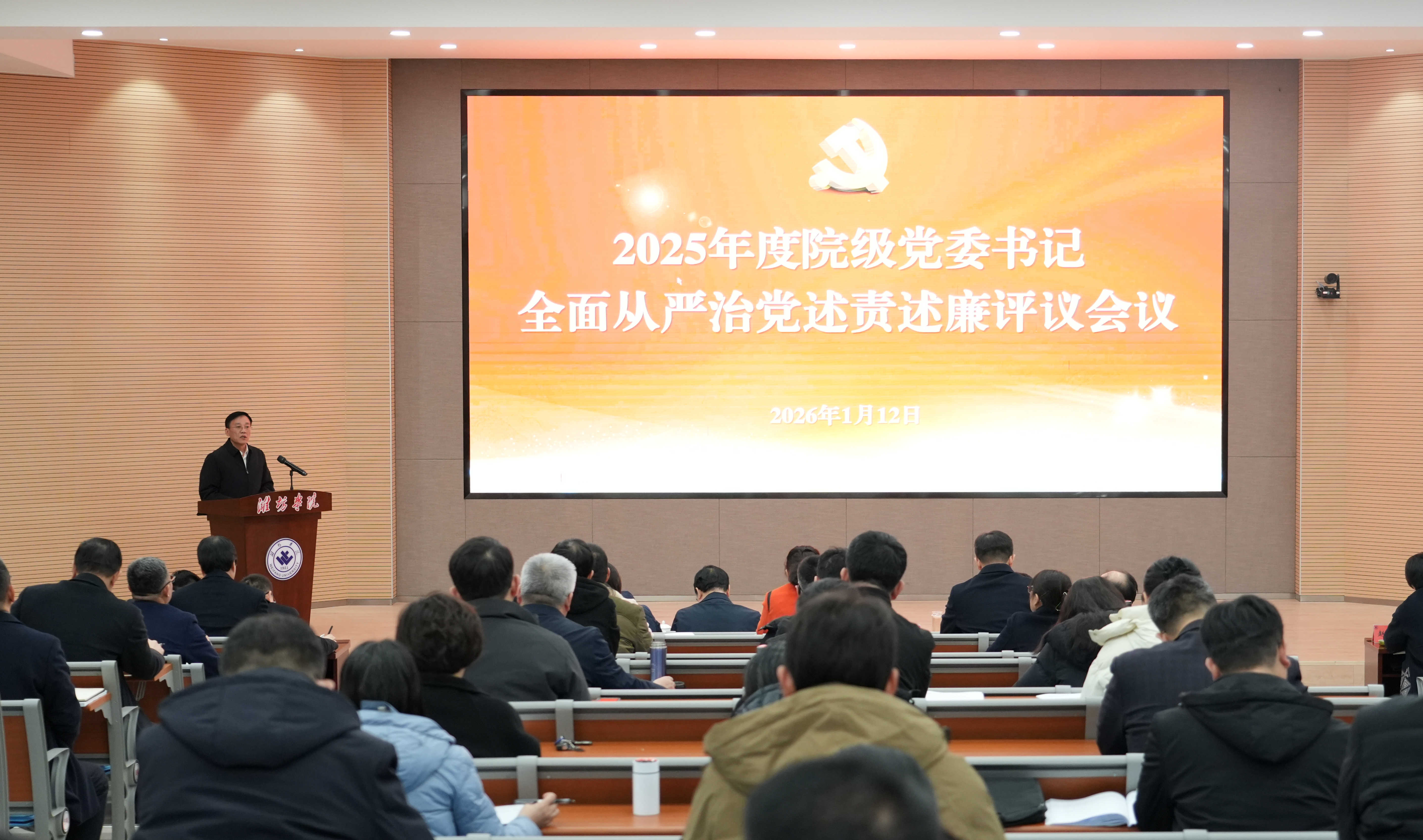 本網訊 1月12日,學校召開2025年度院級黨委書記全面從嚴治黨述責述廉和抓基層黨建工作述職評議會議。黨委書記來逢波主持會議并講話,學校黨委班子全體成員出席會議。
