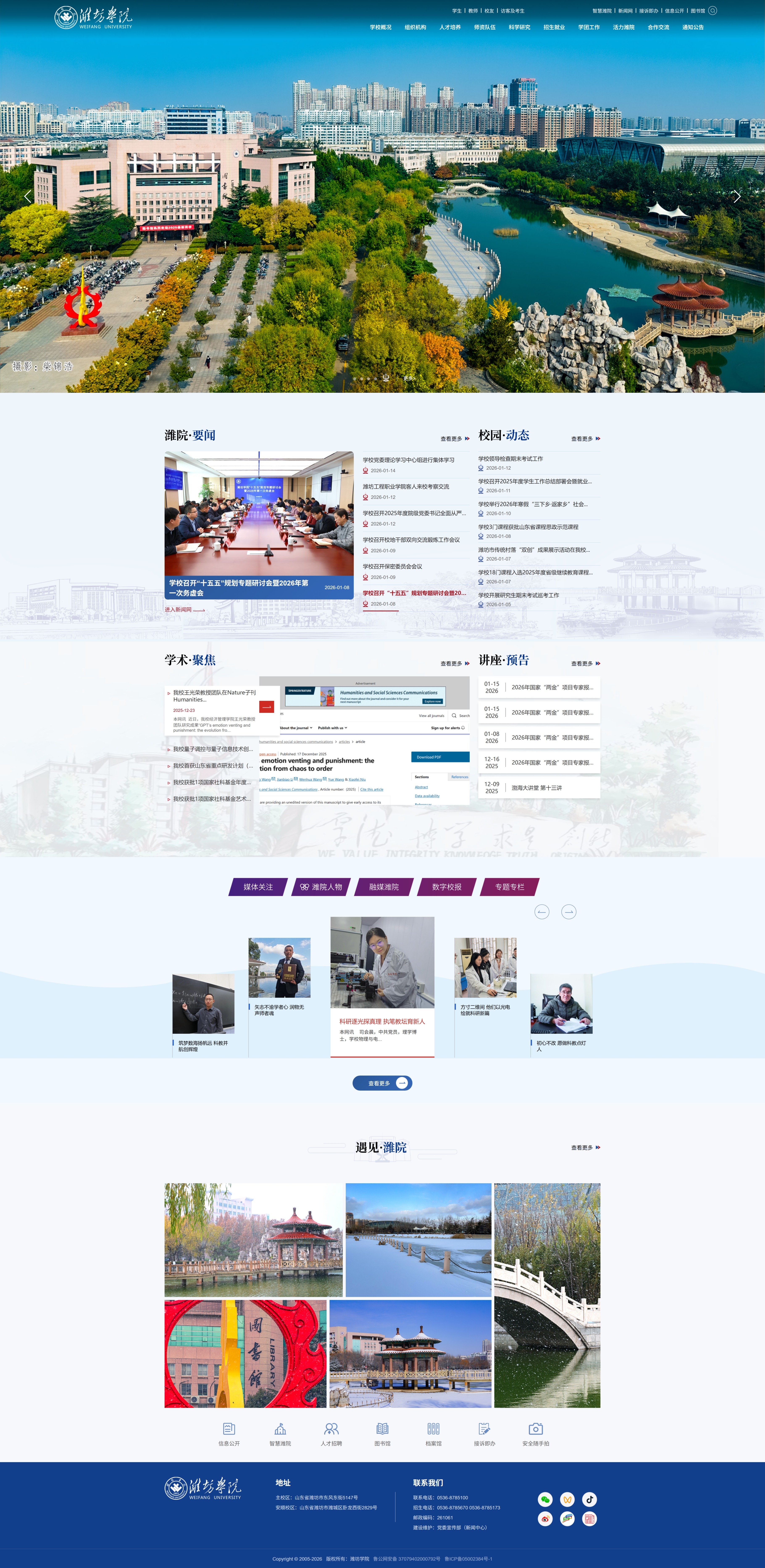 新版網站整體設計延續扁平化設計風格,并靈活融合校內雕塑和地標建筑等元素,整體視覺效果更加緊湊,交互性、實用性更強。新版網站頂部導航欄更加豐富,新聞欄更加直觀,并進一步突出我校學術成果的展示。此外,通過濰院人物等欄目,多方面、立體化呈現學校人文底蘊、發展印記和校園風光,全面彰顯學校活力。