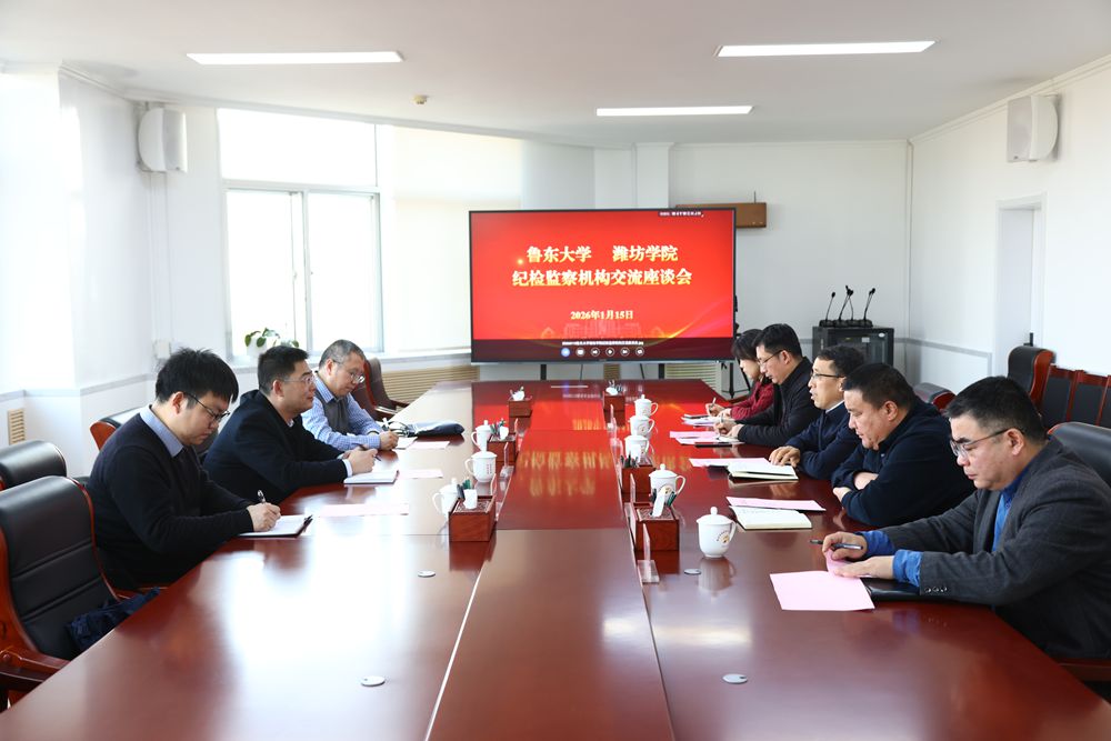 逯鵬對我校紀檢監察工作取得的成效表示贊揚,并介紹了魯東大學在監督體系構建、廉潔文化建設、巡視整改等方面的實踐經驗。雙方圍繞二級單位廉潔文化建設、信息化監督、線索處置等問題進行深入交流。會后,逯鵬一行參觀了學校濰坊文化名人館。