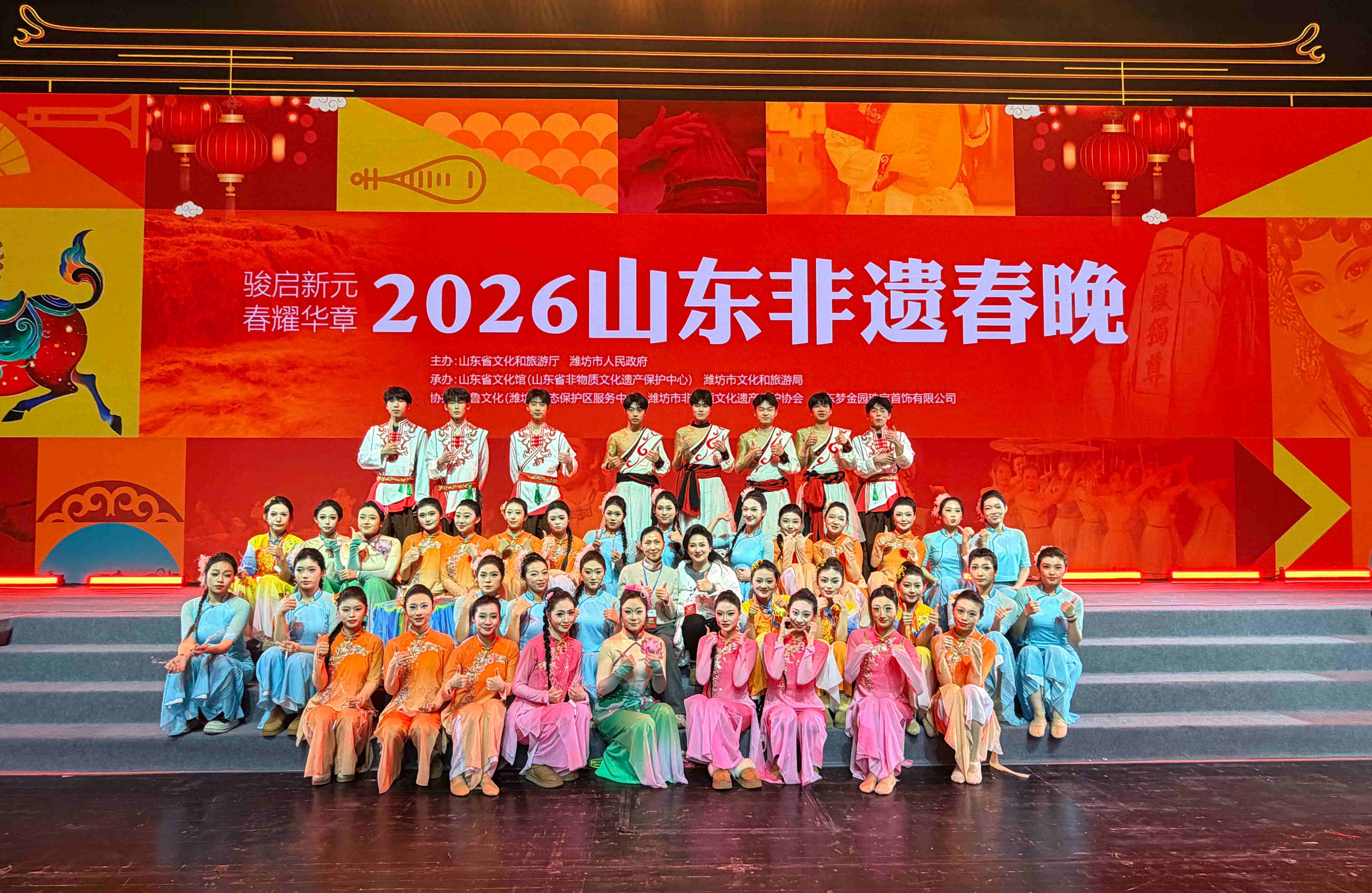 本網訊 1月30日晚,2026山東非遺春晚在濰坊大劇院上演。學校音樂與舞蹈學院師生參與此次晚會的多個節目演出與編導工作,以專業表現力為晚會注入鮮明的青春動能。